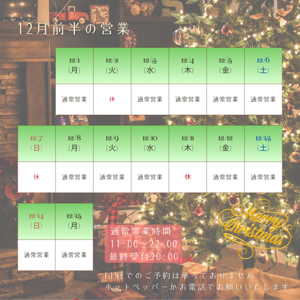12月前半の営業